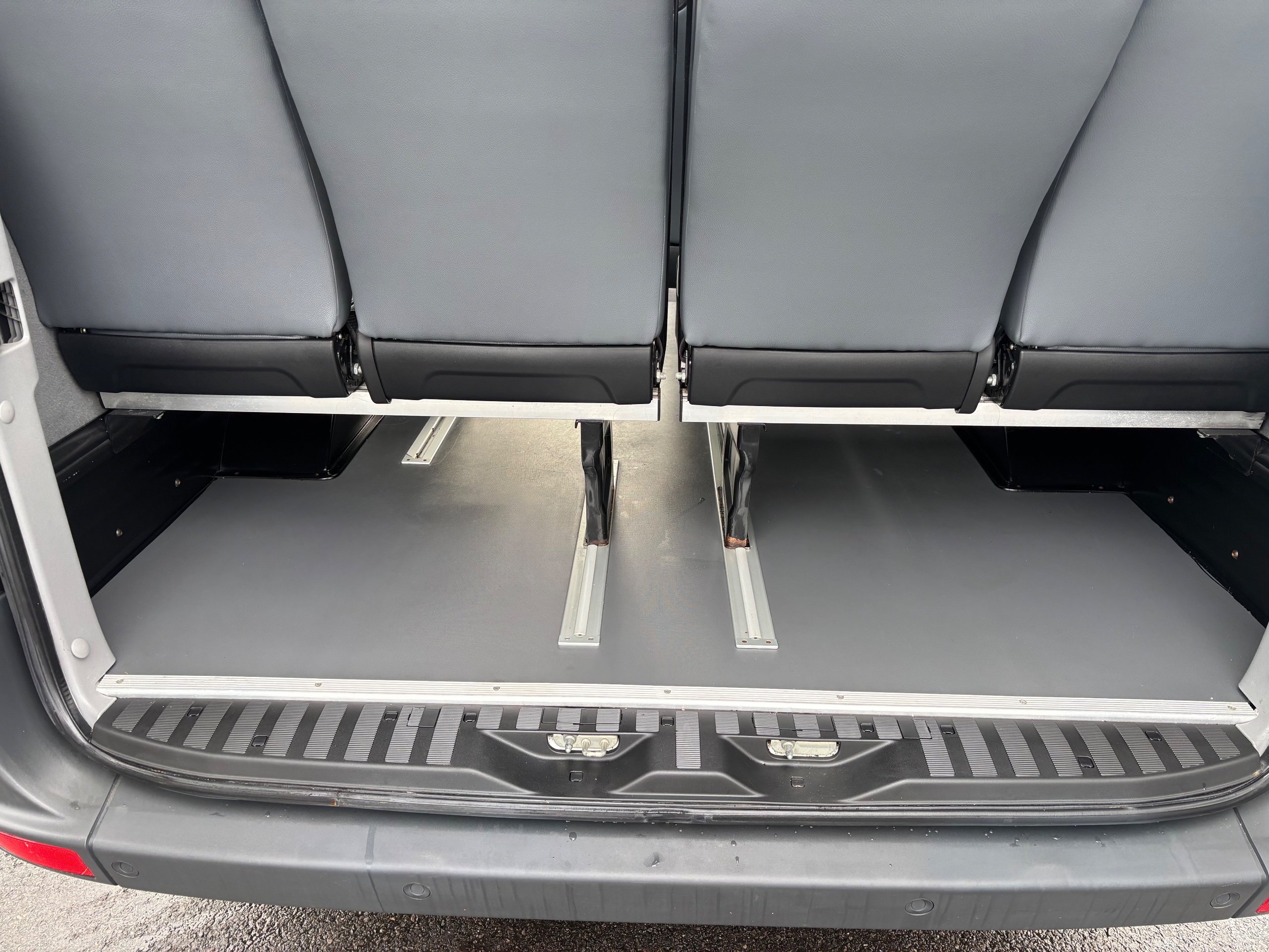 - Compartment under fold-up passenger seat